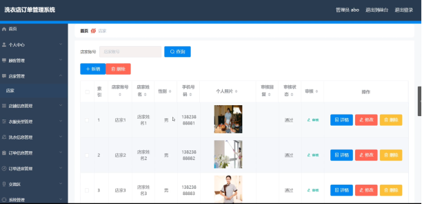 系统管理员可以查看对店家信息进行添加,修改,删除以及查询操作。具体界面如图5.2所示。
