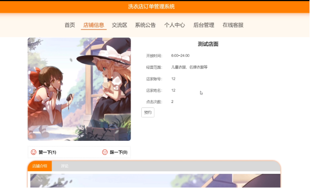 顾客登录之后,可以返回首页在店铺信息里面进行预约。界面如下图所示: