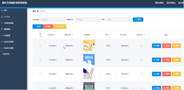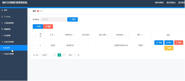教师登录后可以对作业信息进行添加修改删除操作。界面如下图所示: