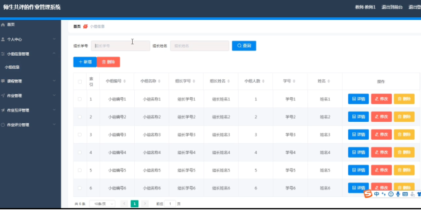 教师登录后可以在后台管理小组信息看,可以对小组信息进行添加修改删除操作。界面如下图所示: