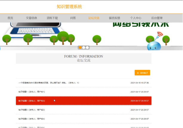 用户可以在论坛交流里面发布信息和查看信息,发布信息需要提前登录才可以操作。界面如下图所示:
