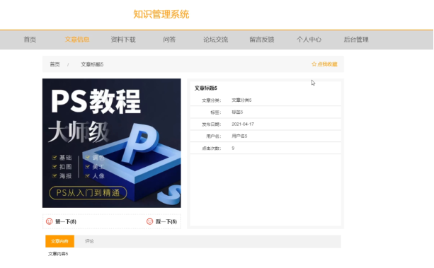 用户可以在首页查看文章信息,也可以对文章信息进行收藏操作。界面如下图所示: