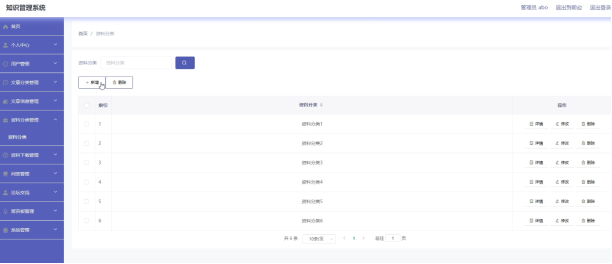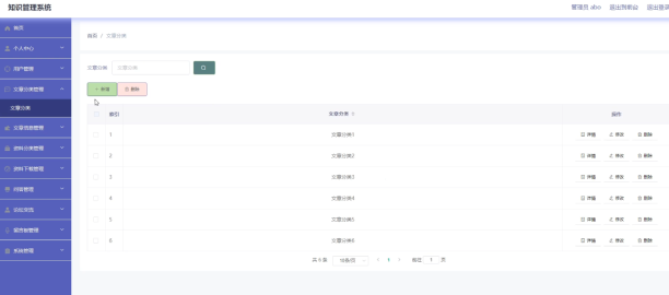 管理员登录可以在文章分类新增,修改,删除,查询资料分类。具体界面如图5.2所示。