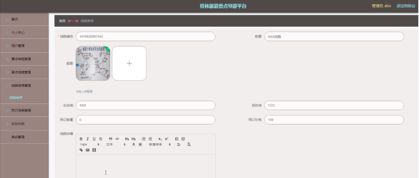 系统管理员可以对线路推荐进行添加修改删除操作。界面如下图所示: