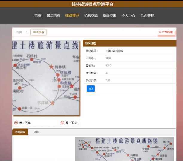 用户登录后,就可以看到线路推荐,可以对推荐线路进行预定。界面如下图所示: