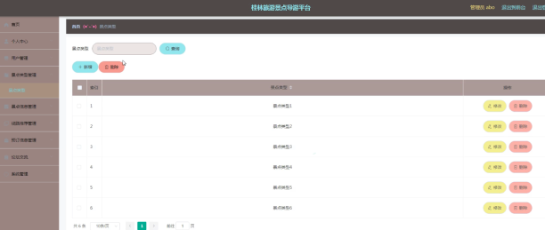 系统管理员可以查看对景点类型进行添加,修改,删除以及查询操作。具体界面如图5.2所示。
