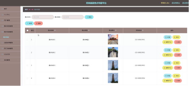 系统管理员可以对景点信息进行添加,修改,删除以及查询操作。界面如下图所示: