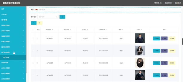 管理员可以对客户信息信息进行添加修改删除操作。界面如下图所示: