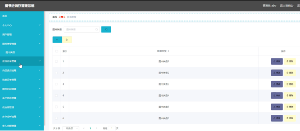 系统管理员可以查看对图书类型进行添加,修改,删除以及查询操作。具体界面如图5.2所示。