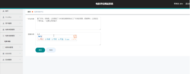 系统管理员可以查看对电影评论进行回复操作。具体界面如图5.2所示。