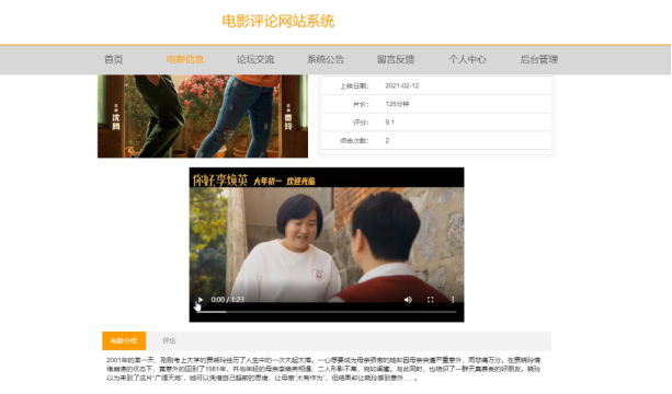 用户可以对电影信息进行收藏,评论操作。界面如下图所示: