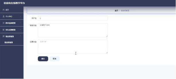 学生登录后可以在留言反馈里面提交留言。界面如下图所示: