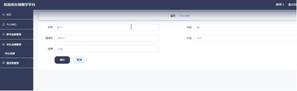 教师可以对学生成绩信息进行修改,删除以及查询操作。界面如下图所示: