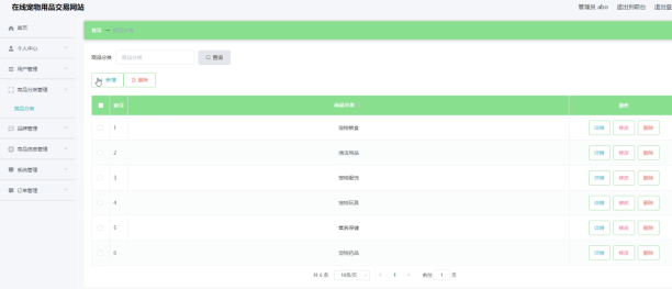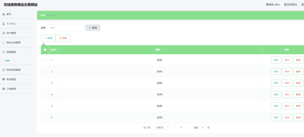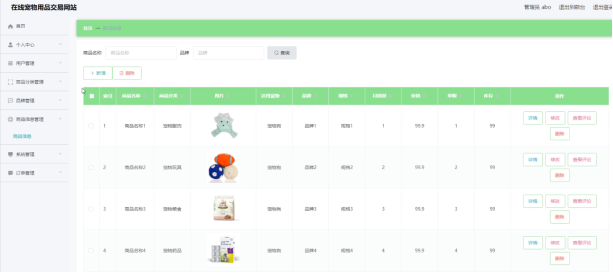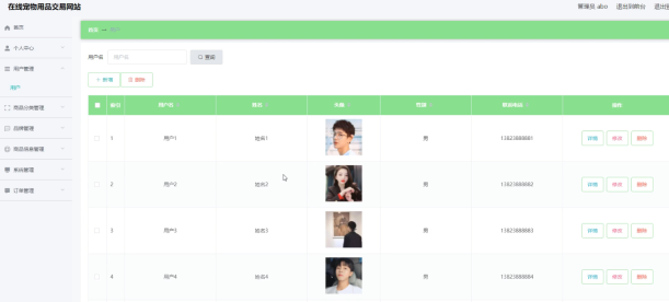 在线宠物用品交易网站的系统管理员可以管理教师,可以对用户信息修改删除以及查询操作。具体界面的展示如图5.1所示。