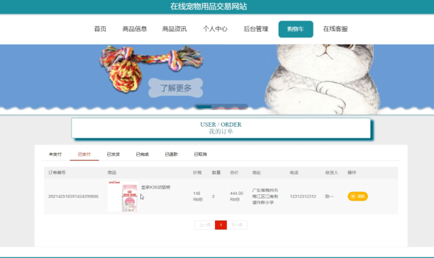 Online Pet Supplies Trading System Based on Java+SpringBoot+Vue