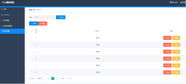 系统管理员可以查看对账单类型信息进行添加,修改,删除以及查询操作。具体界面如图5.2所示。
