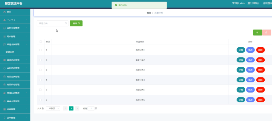 管理员管理菜谱分类,可以添加,修改,删除菜谱分类信息。下图就是菜谱分类管理页面。