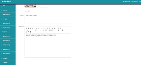 现在大家正处于互联网加的时代,这个时代它就是一个信息内容无比丰富,信息处理与管理变得越加高效的网络化的时代,这个时代让大家的生活不仅变得更加地便利化,也让时间变得更加地宝贵化,因为每天的每分钟,每秒钟这些时间都能让人们处理大批量的日常事务,这些场景,是之前的手工模式无法与之相抗衡的。对于厨艺交流信息的管理来说,传统的通过纸质文档记录信息的方式已经落后了,依靠手工管理这些信息,不仅花费较长的工作时间,在对记录各种信息的文档进行信息统计以及信息核对操作时,也不能及时保证信息的准确性,基于这样的办公低效率环境下,对于厨艺交流信息的处理就要提出新的解决方案。因为这个时代的信息一直都在高速发展,要是不抱着发展的观念看待事情,极有可能被这个市场快速遗忘,甚至被无情地淘汰掉。所以尽早开发一款厨艺交流平台进行信息的快速处理,既跟上了时代的发展脚步,也能让自己的核心竞争力有所提升。