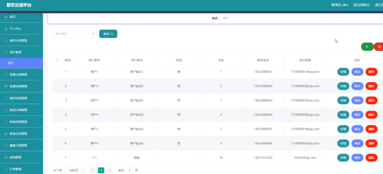 管理员管理用户信息,可以添加,修改,删除用户信息信息。下图就是用户信息管理页面。