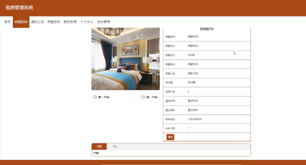 用户登录可以查看房屋信息,并可以对房屋信息进行预约操作。界面如下图所示: