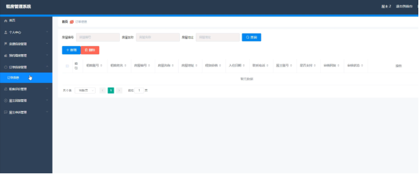 屋主可以对订单信息进行添加修改删除操作,还可以对订单信息进行查询。界面如下图所示: