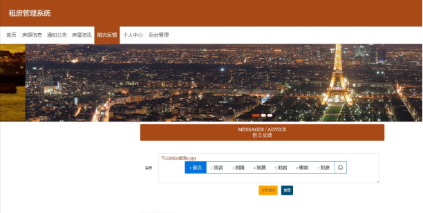 用户登录可以进行留言反馈操作。界面如下图所示:
