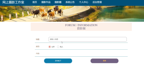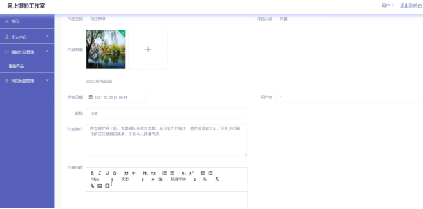 用户可以发布自己的摄影作品信息。界面如下图所示: