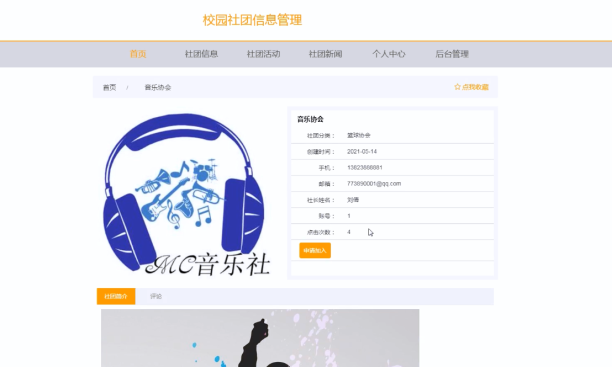 Campus Club Information Management System Based on Java+SpringBoot+Vue