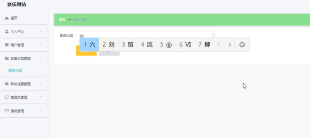 系统管理员可以查看对歌曲分类进行添加,修改,删除以及查询操作。具体界面如图5.2所示。