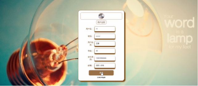 用户注册,在注册页面通过填写用户名、密码、用户姓名、年龄、手机号码、邮箱等信息进行注册,如图5-12所示。