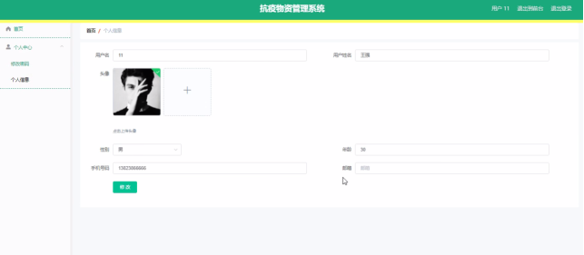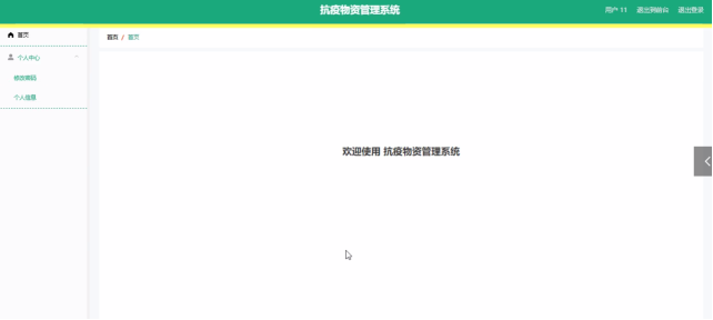 抗疫物资管理系统,在系统可以查看首页、个人中心等内容,如图5-9所示。