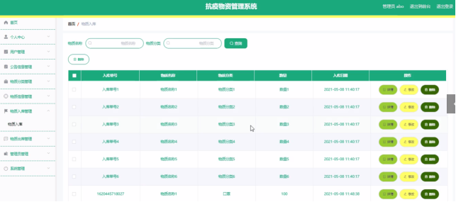 Anti-Epidemic Materials Management System Based on Java+SpringBoot+Vue