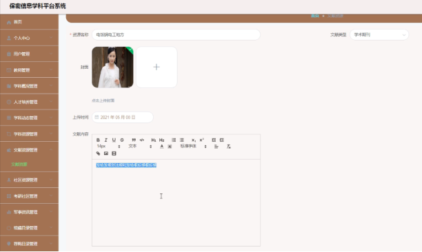 管理员可以对文献资源进行添加修改删除。界面如下图所示:
