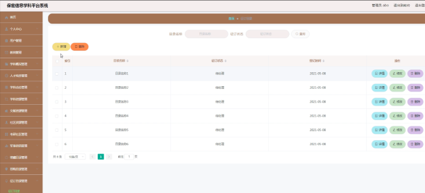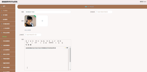 管理员可以对学科动态添加修改删除操作。界面如下图所示: