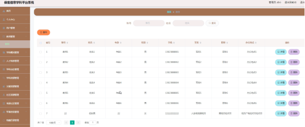 管理员可以对教师信息进行查下和删除。具体界面如图5.2所示。