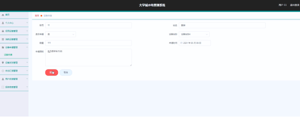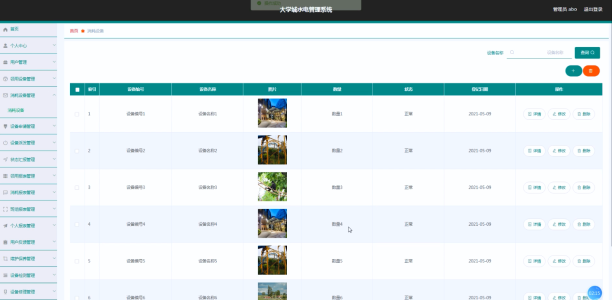 大学城水电管理系统的系统管理员可以管理领用设备,可以对领用设备信息添加修改删除以及查询操作。具体界面的展示如图5.1所示。