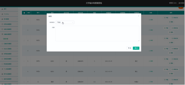 系统管理员可以对设备申请进行审核操作。界面如下图所示: