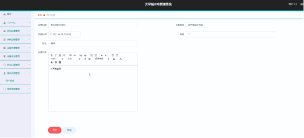 用户可以对用户反馈进行添加修改删除操作。界面如下图所示: