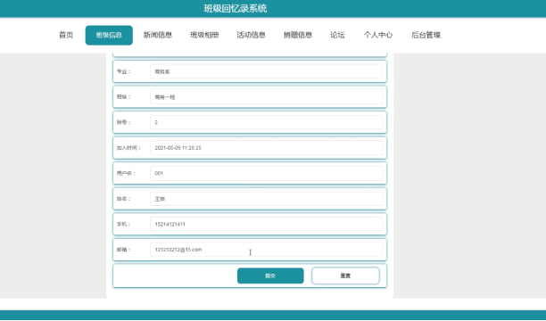 班委可以对班级信息进行添加修改删除。界面如下图所示: