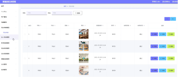 系统管理员可以对班级相册进行添加修改删除操作。界面如下图所示: