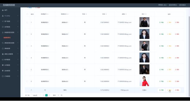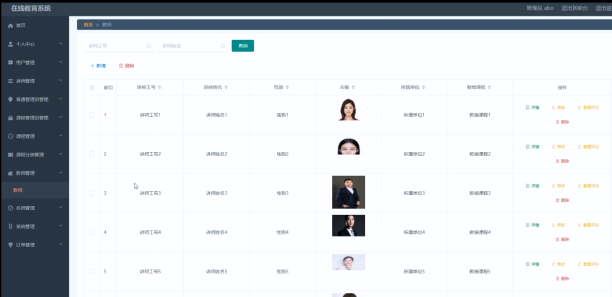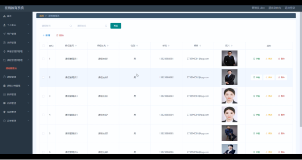 管理员可以对讲师信息进行添加修改删除操作。界面如下图所示: