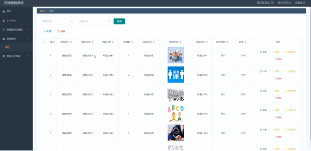 课程管理员可以对课程信息进行添加,修改,删除以及查询操作。界面如下图所示: