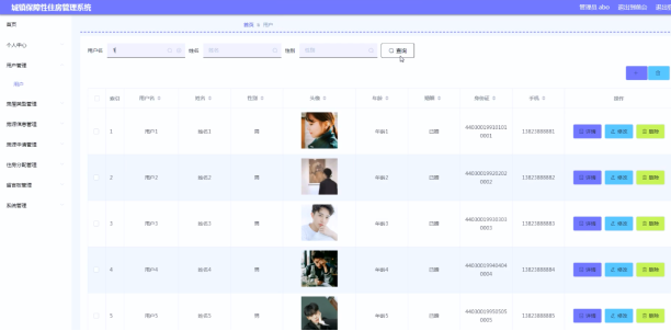管理员可以对用户信息进行添加,修改,删除操作。具体界面的展示如图5.1所示。