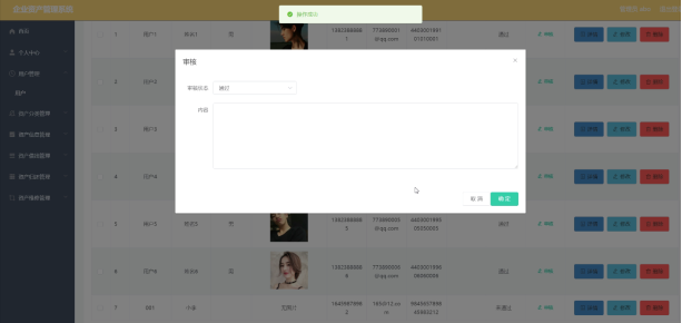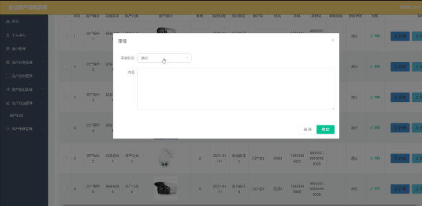 管理员可以对资产归还进行审核操作。界面如下图所示: