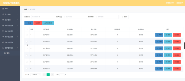 管理员可以对资产维修进行添加,修改,删除,查询操作。界面如下图所示: