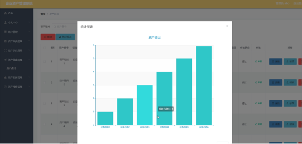 系统管理员可以查看对资产借出信息进行统计。具体界面如图5.2所示。