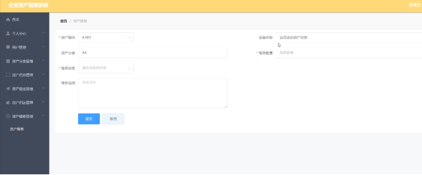 管理员可以对资产维修进行添加操作。界面如下图所示:
