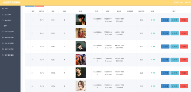 企业资产管理系统的系统管理员可以对用户信息添加修改删除以及查询操作。具体界面的展示如图5.1所示。