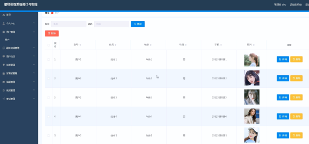 管理员对用户信息修改删除以及查询操作。具体界面的展示如图5.1所示。