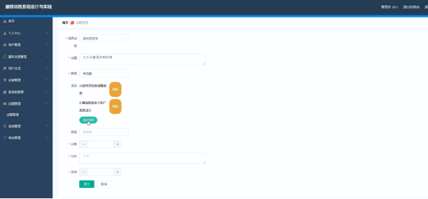 系统管理员可以对试题信息进行添加,修改,删除以及查询操作。界面如下图所示: